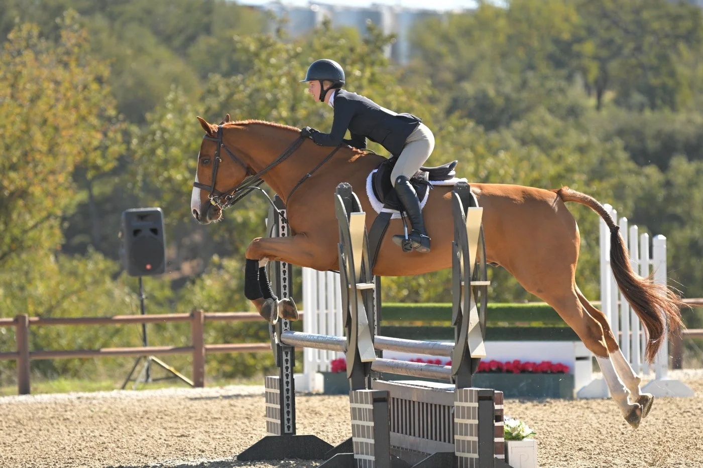 Offered for in-barn lease only. 2015 OTTB, forward-thinking but very brave and safe. She has shown successfully through the .95m jumpers and is available for partial lease in our Portola Valley program. Very affordable rates.